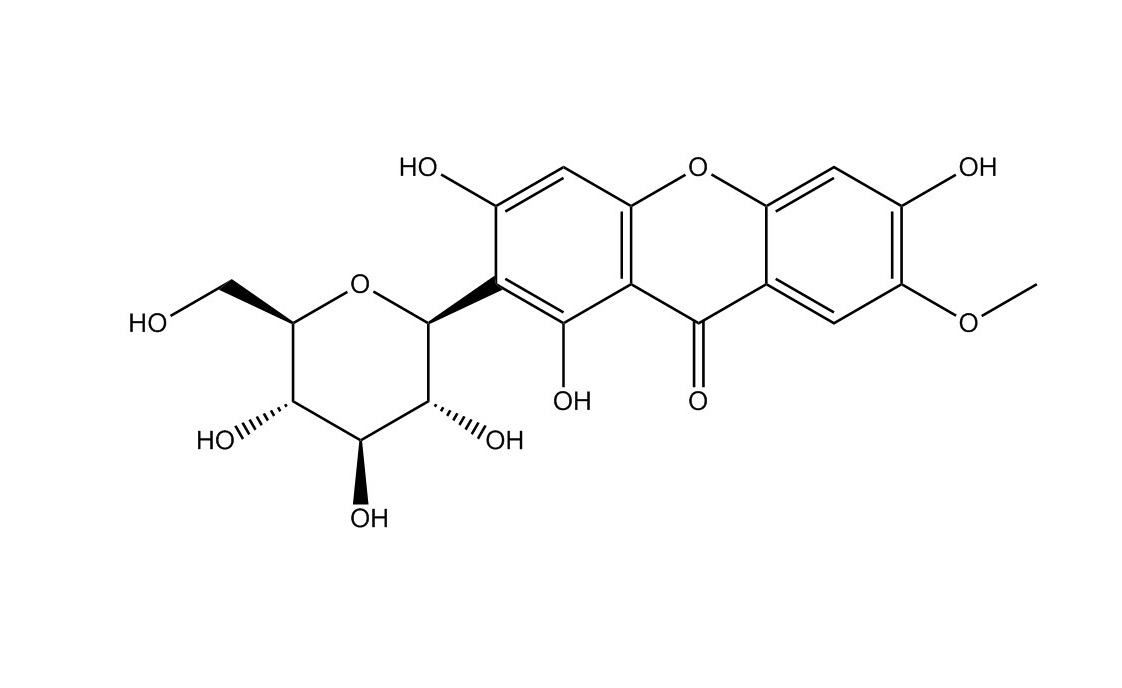【英文別稱】 7-O-methylmangiferin, 1,3,6-trihydroxy-7-methoxyxanthone-2-C-β-D-glucopyranoside